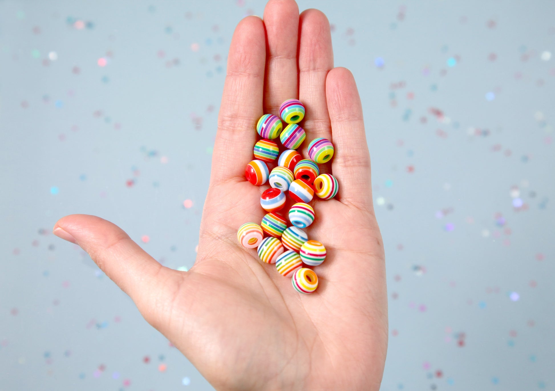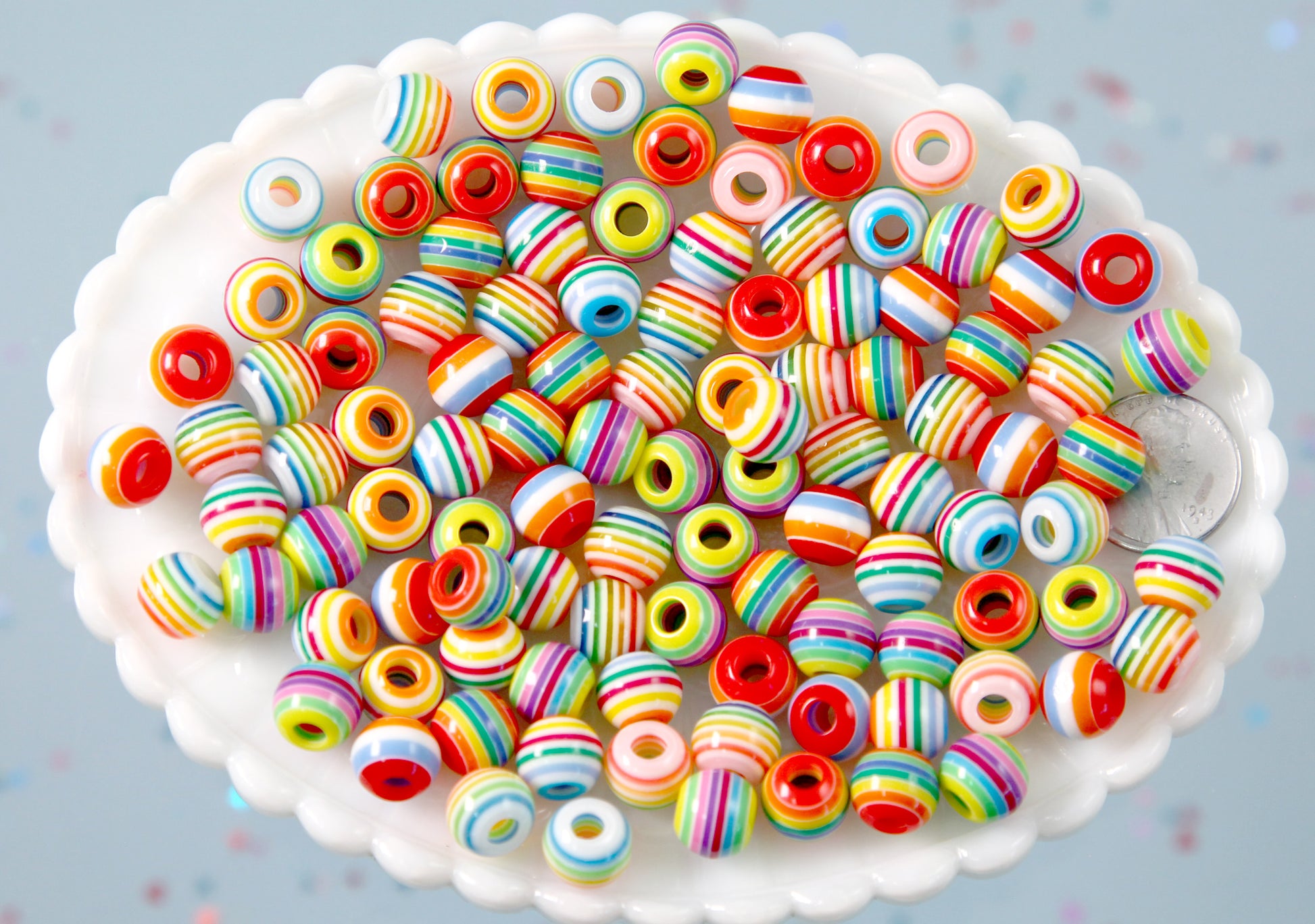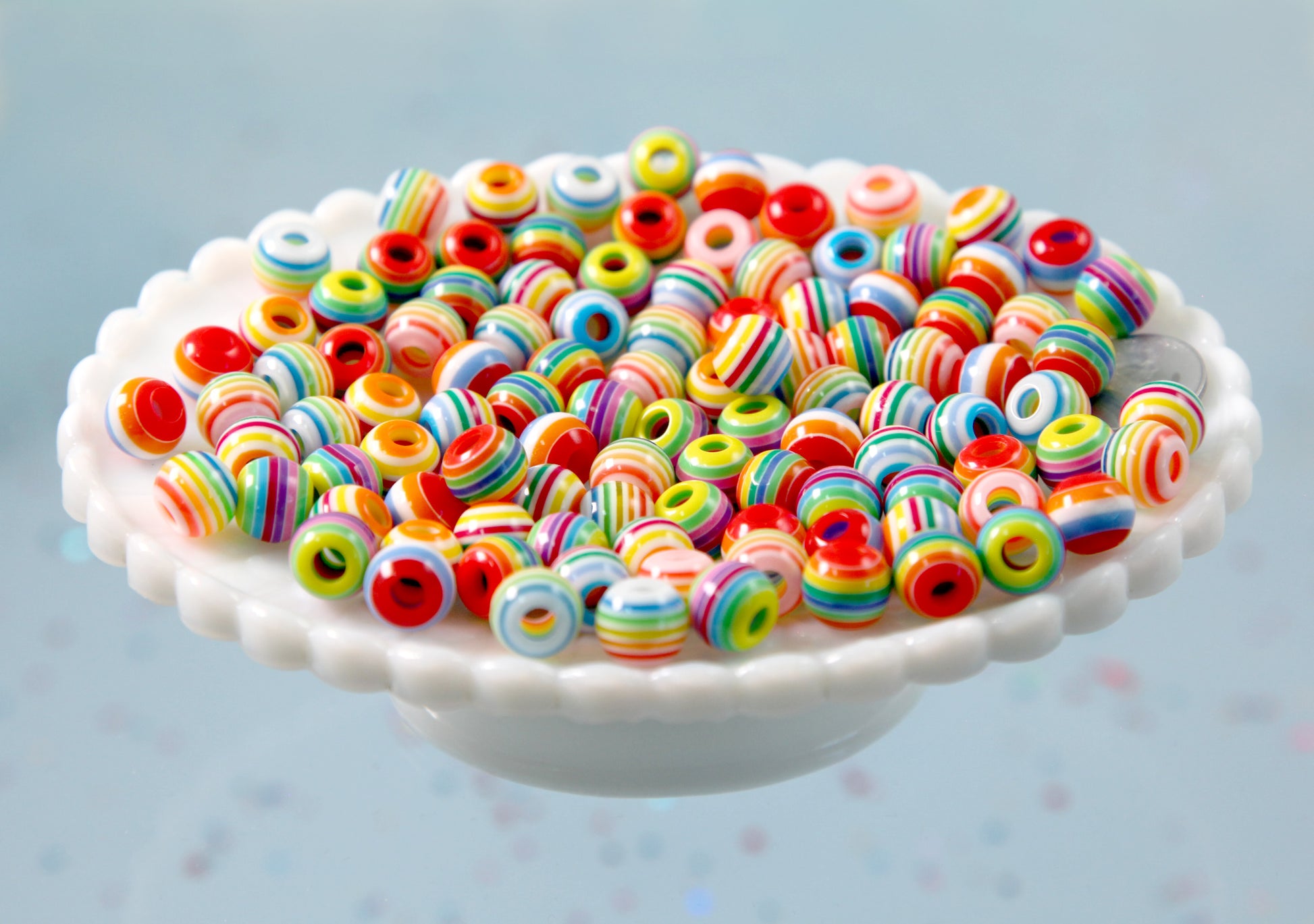 Striped Resin Beads - 10mm Large Hole Small Striped Resin or Acrylic Beads, mixed color, small size beads - 100 pc set