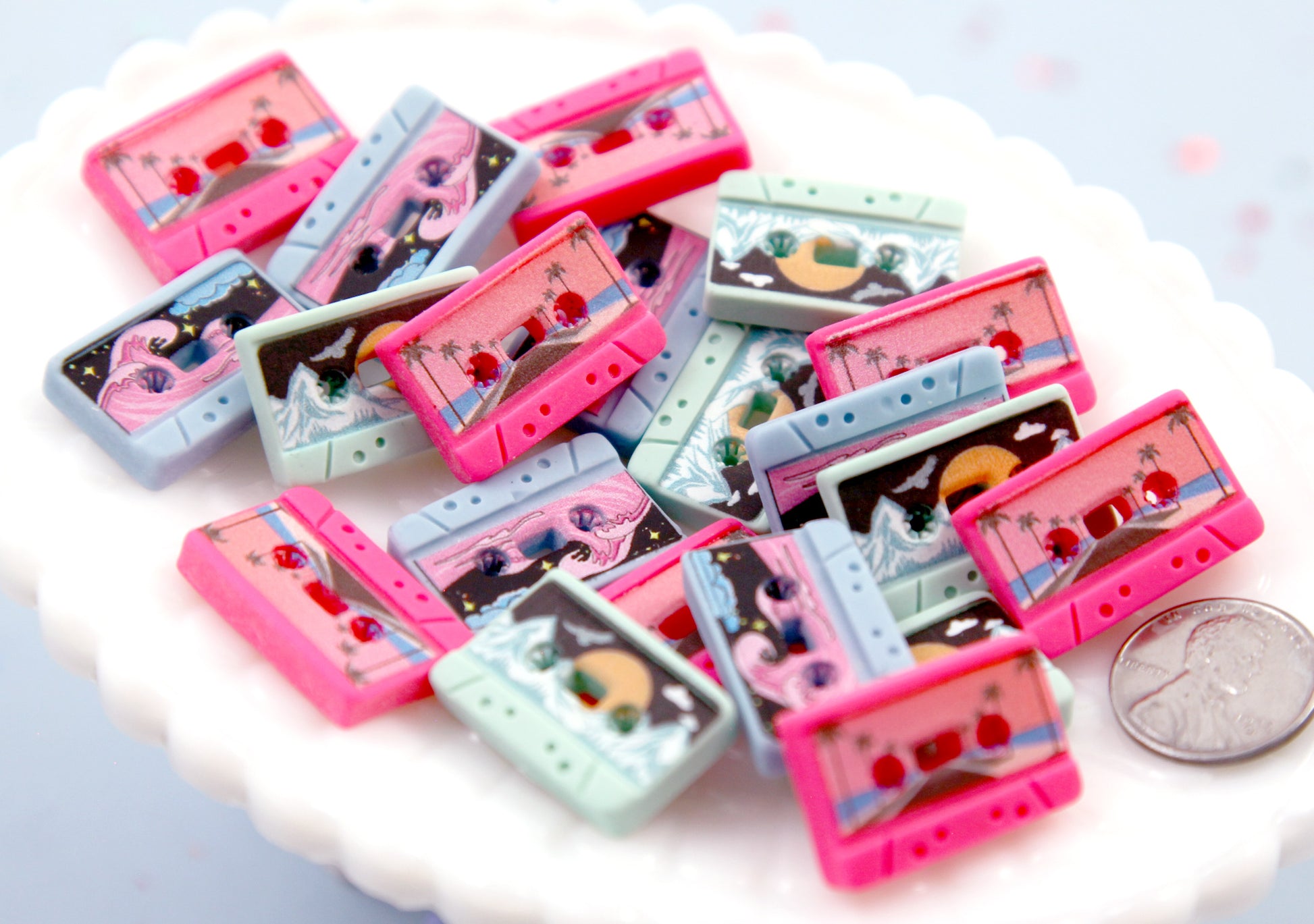 Tiny Cassette Tape Flatbacks - 12 pieces - 24mm Mini Retro Cassette Tape Mixtape Flat Back Resin Cabochons
