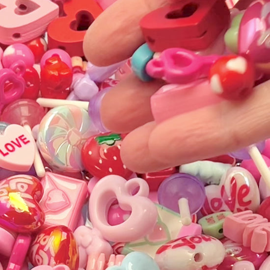 Valentine's Day Charms and Beads Grab Bag - 25 to 100 pcs - Bead Soup - Cute Mixed Lot of Charms - for kandi, ispy, sensory crafts, jewelry