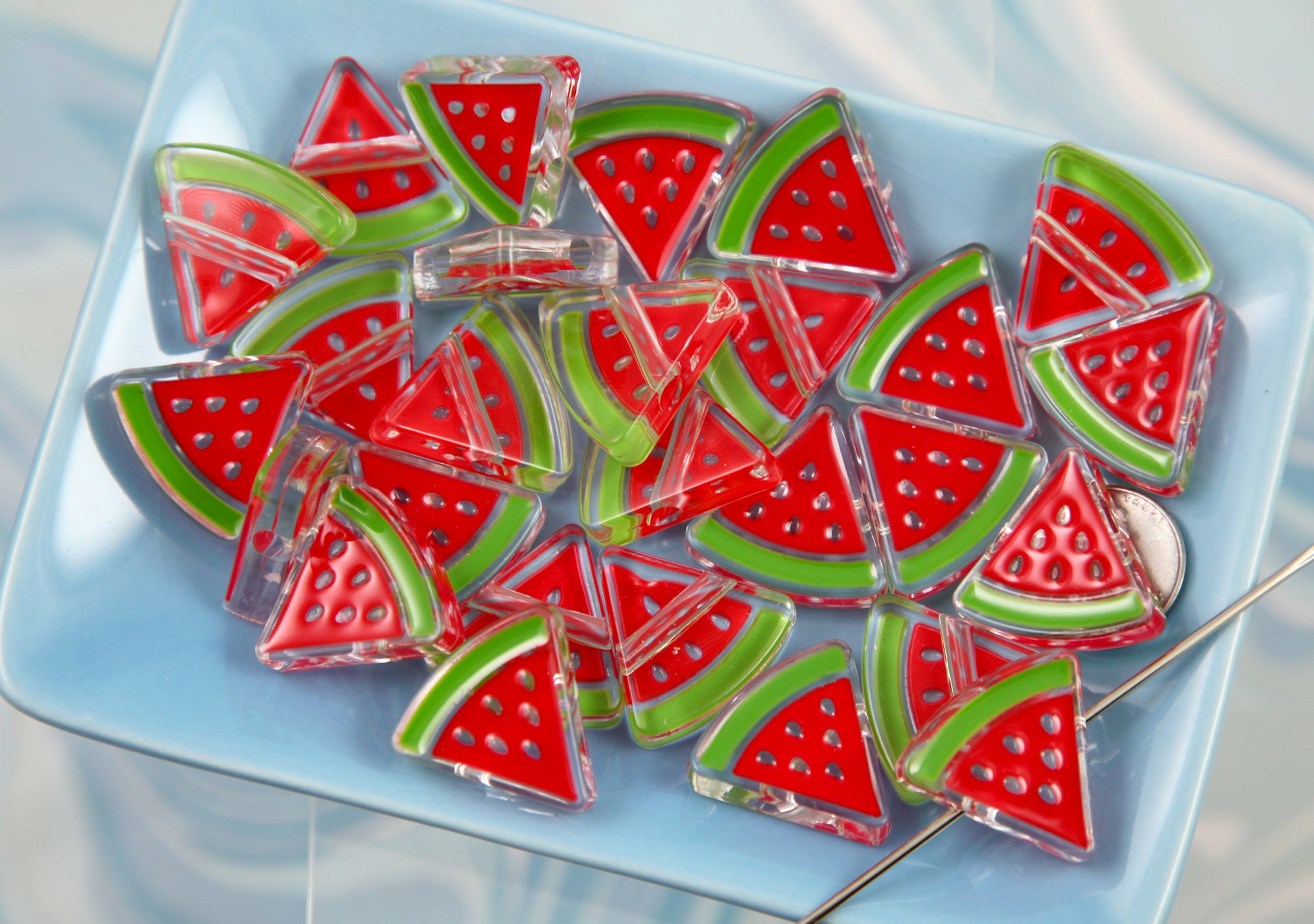 Watermelon Beads - 25mm Watermelon Slices Bead Triangle Shape - Transparent Acrylic or Resin Beads...